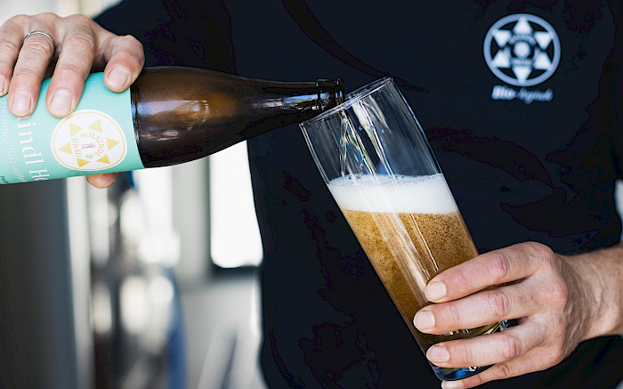 Was genau bietet nun das Haindl Bräu? Das „Haindl Hell“ ist ein unfiltriertes, helles Bier, hergestellt mittels Flaschengärung in der eigenen biozertifizierten Brauerei – gebraut mit bayerischem Bio-Hopfen und Bio-Malz, handwerklich produziert in kleinen Mengen. In der Brauerei werden alle Schritte selbst übernommen: vom Einkauf der Rohstoffe bis zur Abfüllung und Etikettierung – oft mit Unterstützung von Rudis Frau Angie und Tochter Paula.
